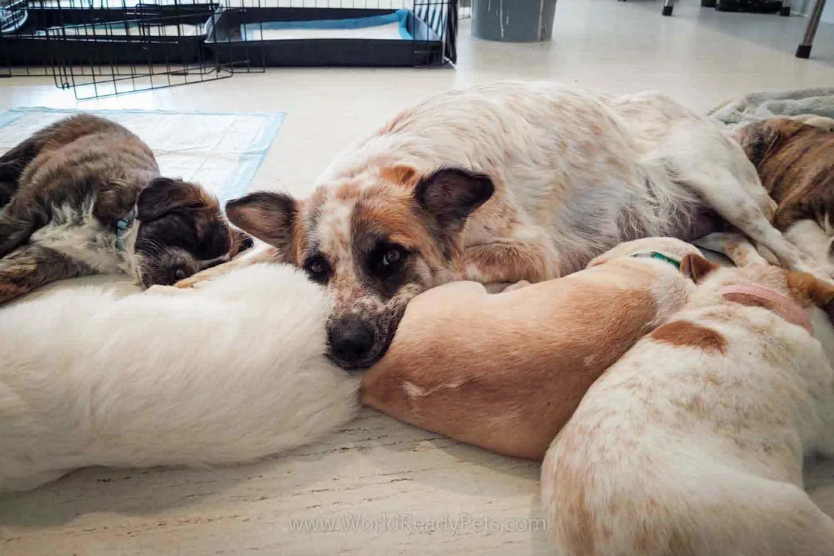 I think these are going to be some big puppies. This week they weigh between 9 and 11 lbs which means they’ll probably in the 50-80 lb range - but that’s just a guess. I never would have guessed it since their mom’s normal weight will probably be about 45-50 lb. We started taking adventure walks around the property and the puppies love it. The get physical and mental exercise as well as practice following. They are starting to enter their most monstery stage! Despite their constant puppy mouthing, they are usually pretty gentle.